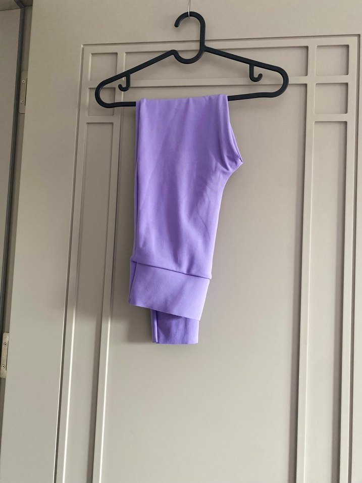 Pastel mor renkte, midi boyda ve yumuşak, sıcak kumaştan yapılmış kadın taytı. Günlük kullanıma uygun sade ve normcore tarzda. ♀️
