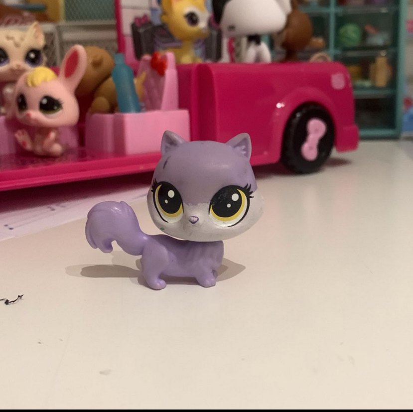 Pastel mor renkte, büyük gözlü ve kıvrık kuyruklu küçük bir kedi aksiyon figürüdür. Pürüzsüz ve parlak yüzeye sahiptir.