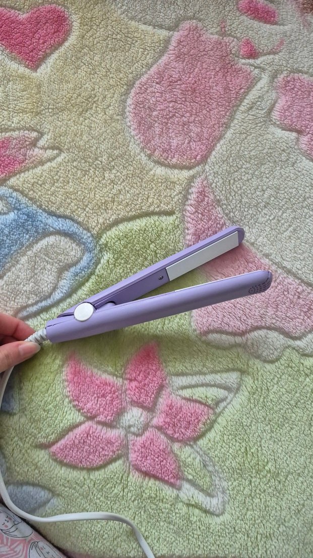 Pastel mor renkte saç düzleştirici, kolay şekillendirme için pürüzsüz plakalar ve kullanışlı kompakt tasarıma sahiptir. Mini boy seyahat düzleştiricisi.