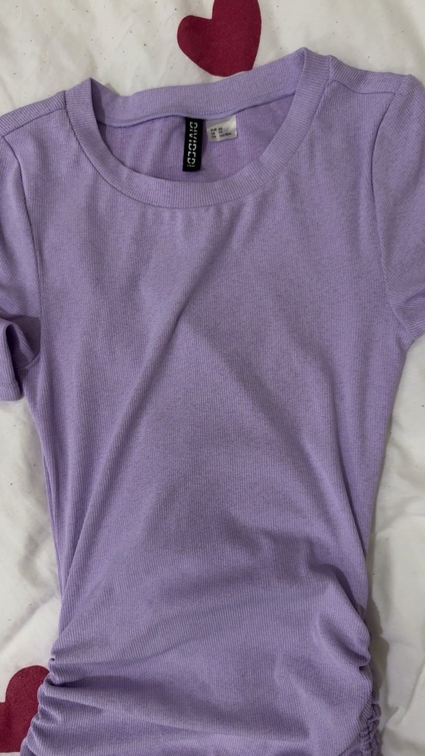 Pamuklu, pastel mor renkte, kısa kollu ve yuvarlak yakalı, sade ve basic hamile tişörtü. Günlük kullanıma uygun, rahat kesim.