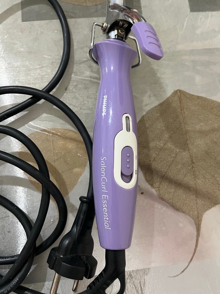 Pastel mor renkte SalonCurl Essentia saç maşası, kullanımı kolay bir açma-kapama düğmesine sahiptir. Standart priz kablosu ile çalışır. ♀️