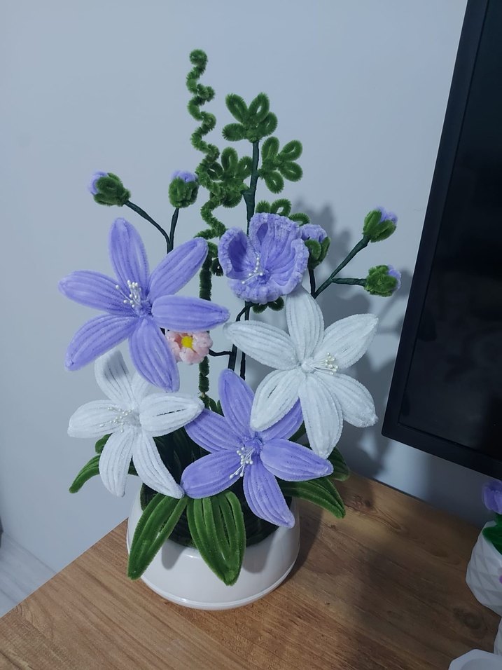 Pastel Mor ve Beyaz Dekoratif Çiçek Aranjmanı