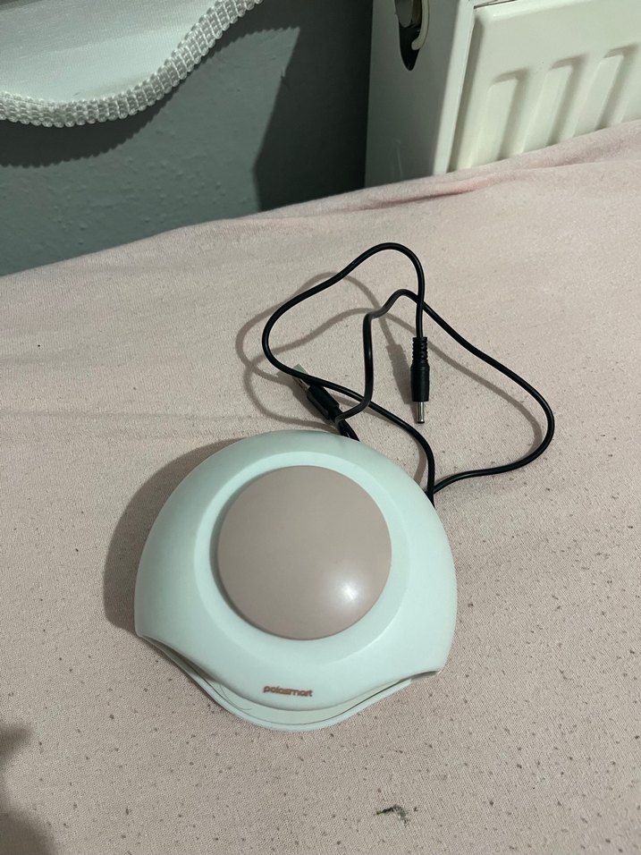Pastel renklerde oje kurutucu. UV ışığı vardır ve hava üfler. Hem pil hem kablo ile çalışır kabloyu da göndereceğim