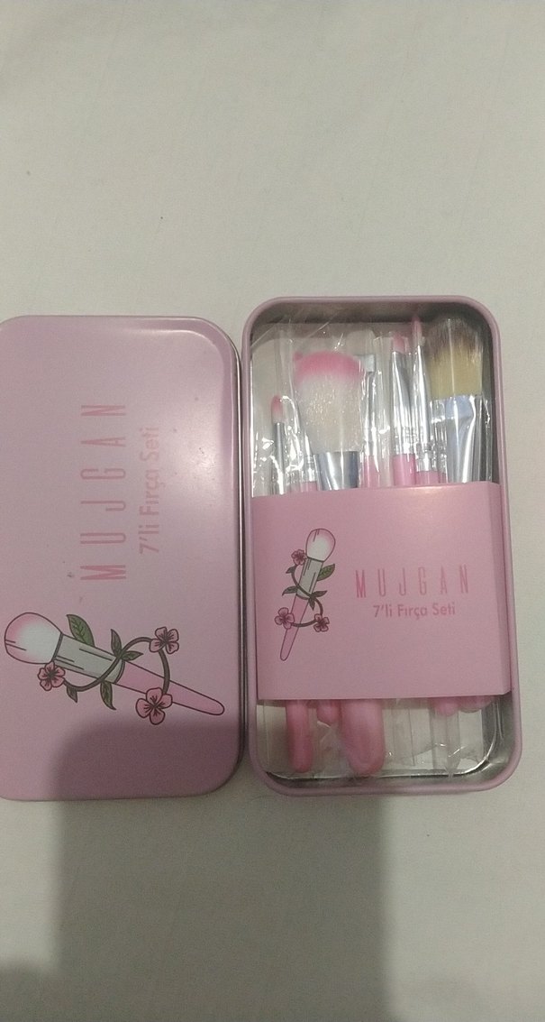 MÜJGAN 7'li makyaj fırça seti, pastel pembe sapları ve yumuşak kılları ile pürüzsüz makyaj uygulaması sağlar.