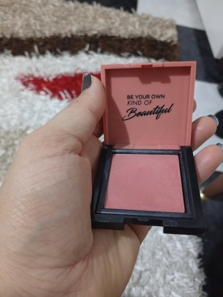 Pastel pembe renkte, kapağında "BE YOUR OWN KIND OF Beautiful" yazısı bulunan kompakt allık. Yanaklara doğal ve yumuşak bir ışıltı verir.