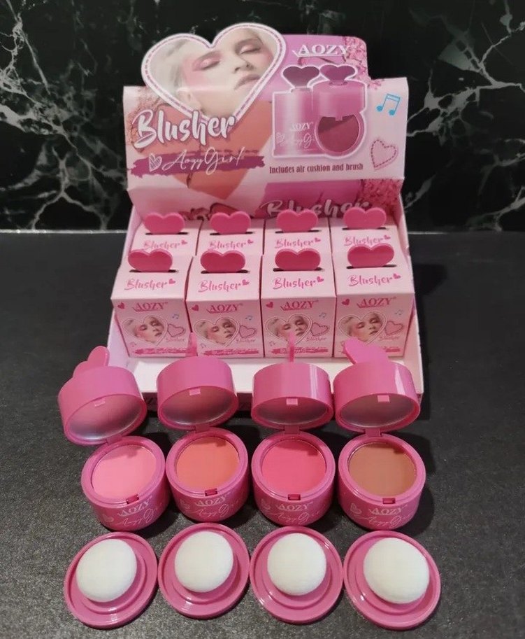 AOZY markalı bu allık seti, krem formüllü ve yumuşak aplikatör fırçalı dört pastel pembe ton içerir.