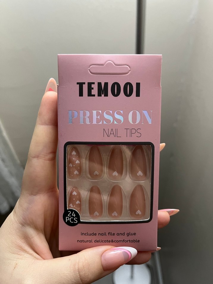 TEMOOI pastel pembe basılan tırnak uçları, 24 adet paket içinde tırnak törpüsü ve yapıştırıcı ile birlikte gelir. Doğal, narin ve rahat bir kullanım sağlar.