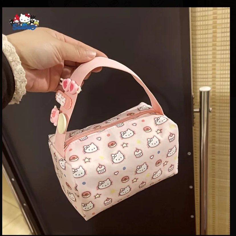 Pastel pembe baskılı kadın çanta, sentetik kumaş ve fermuarlı kapama ile. Minimalist tarzda, sokak modasına uygun şık ve günlük kullanıma uygun.