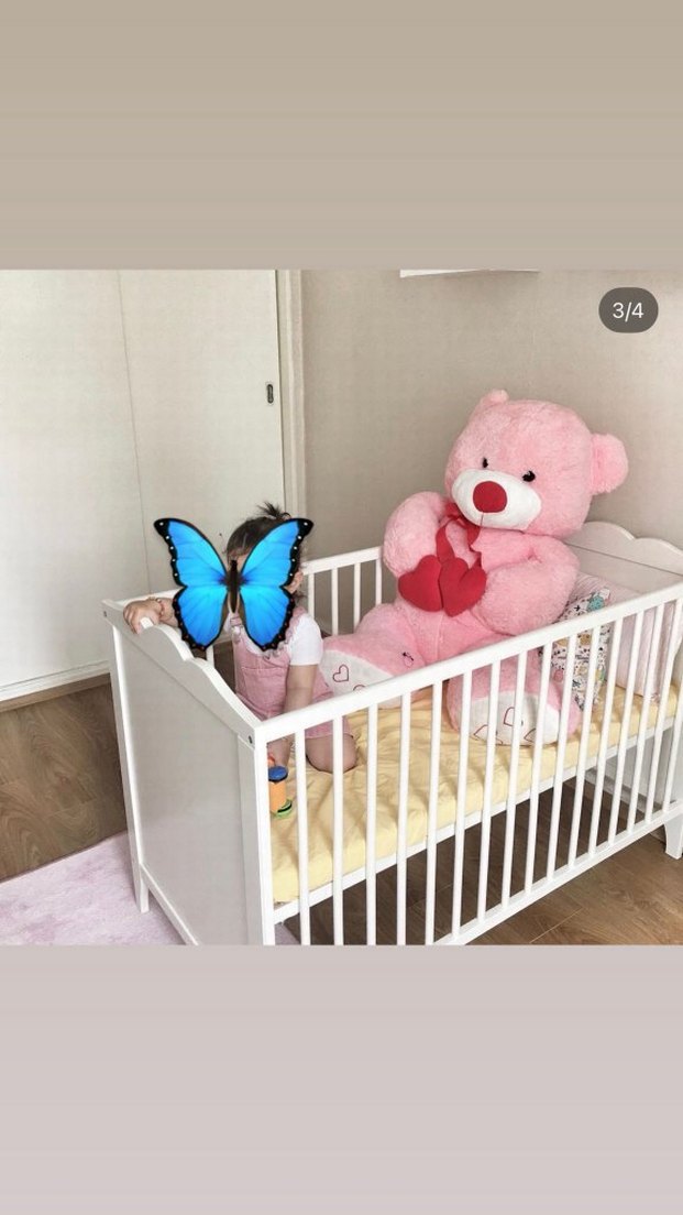 Beyaz korkuluklu, pastel pembe renkte bebek beşiği. İçinde yumuşak bir yatak bulunmaktadır. Bebekler için rahat bir uyku alanı sunar. ️