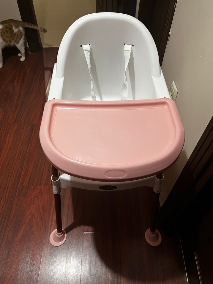 sondaki fotoda defosu var biraz çatlamış.Pastel pembe renkte, güvenli beyaz oturma alanı ve kaymaz tepsisi ile bebek beslemeye uygun mama sandalyesi. ️