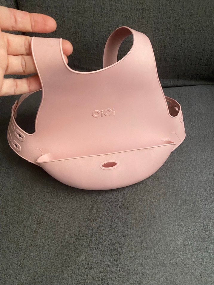 Yumuşak ve esnek malzemeden yapılmış, dökülenleri yakalayan cep detaylı pastel pembe bebek önlüğü.