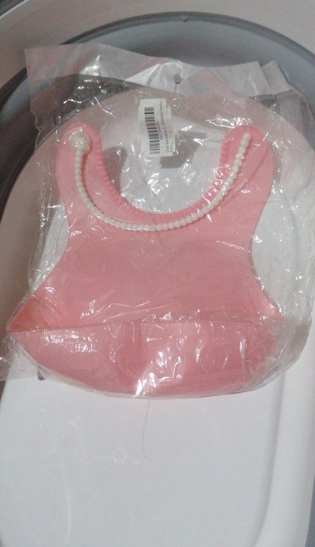 Yumuşak dokulu, kolay temizlenebilir pastel pembe bebek önlüğü, beslenme sırasında dökülenleri yakalar.