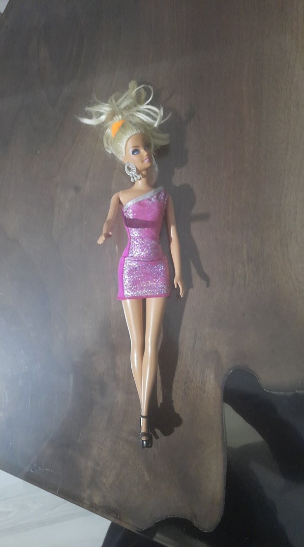 Pastel pembe renkte, pembe detaylı kıyafetli plastik oyuncak bebek. MATTEL 2009