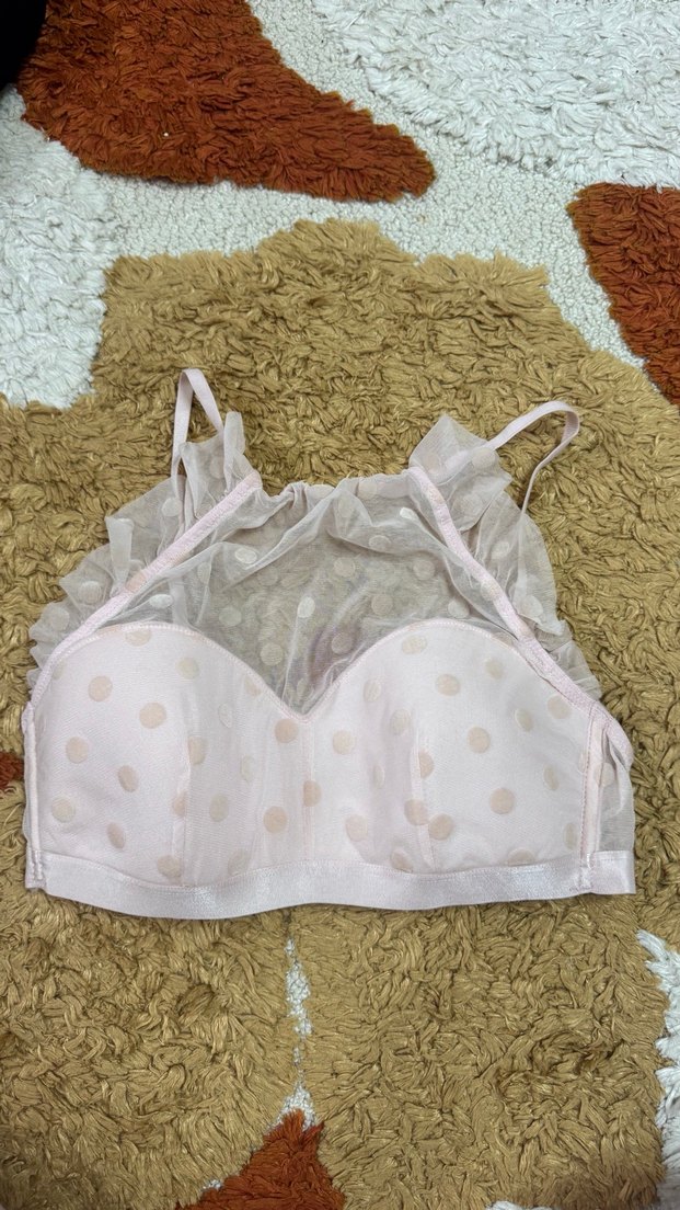 Pastel pembe renkte, desensiz ve bohem tarzda sütyen. Ayarlanabilir askıları ve normal uzunlukta bantı ile rahat kullanım sağlar.