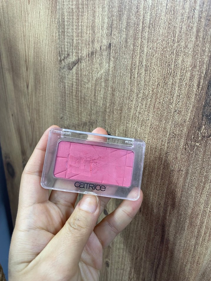 Catrice markasına ait pastel pembe renkte allık, şeffaf kapaklı kompakt kutuda. Doğal görünüm için yumuşak dokulu.