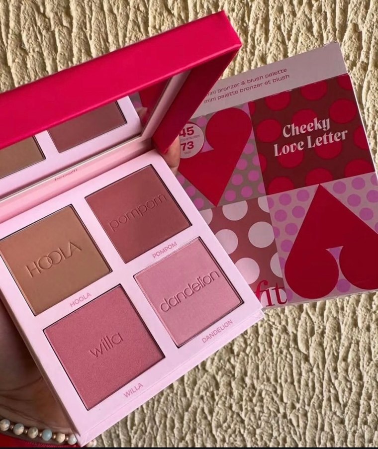Pastel pembeden oluşan bu allık paletinde Hoola, Pompon, Willa ve Dandelion renkleri yer alıyor. Ambalajda 'Cheeky Love Letter' yazısı ve eğlenceli desenler bulunuyor.
