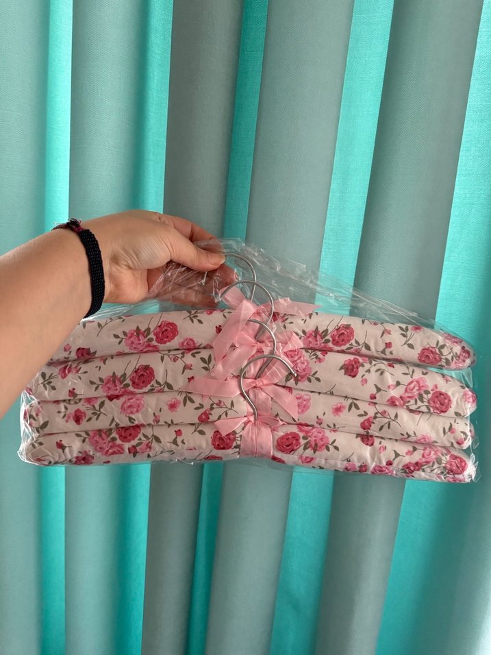 Pastel Pembe Çiçek Desenli Elbise Askısı
