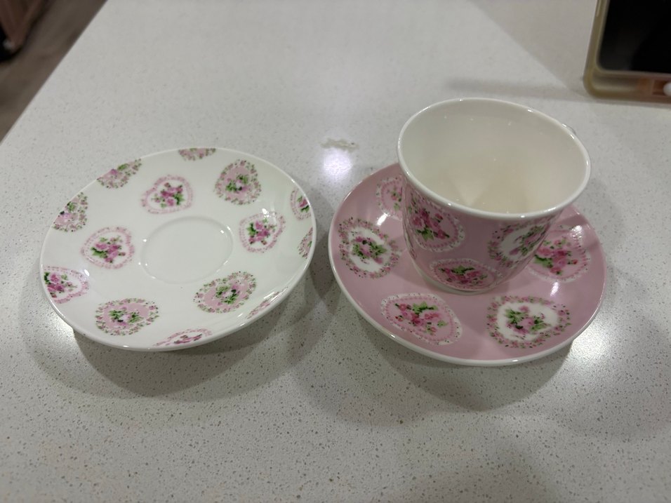 Pastel Pembe Çiçek Desenli Fincan ve Tabak Seti altlıklı