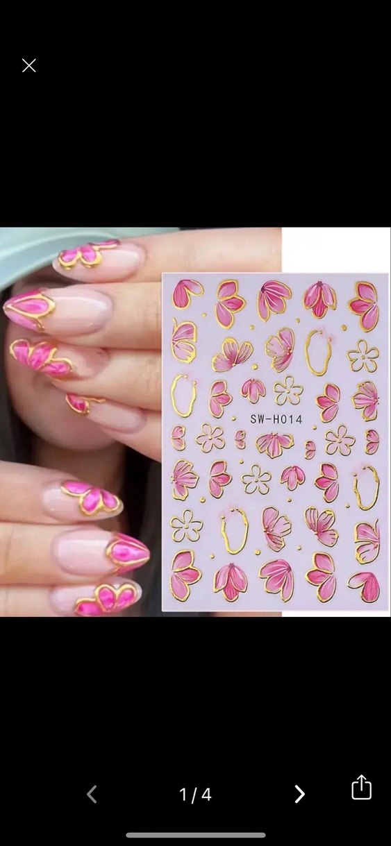 Pastel Pembe Çiçek Tırnak Sticker Nail Art