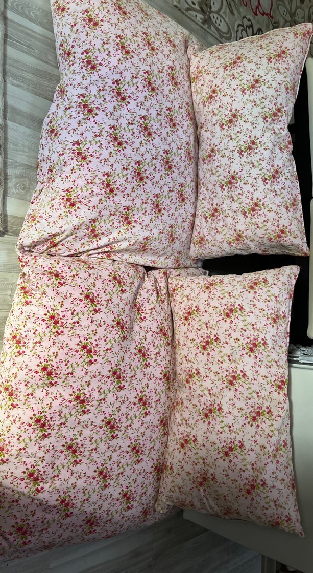 Pastel pembe renkli, çiçek desenli yumuşak mınder oturmalık set içi dolu battal boyda sadece bır kılıfta dıkıs ızı mevcut