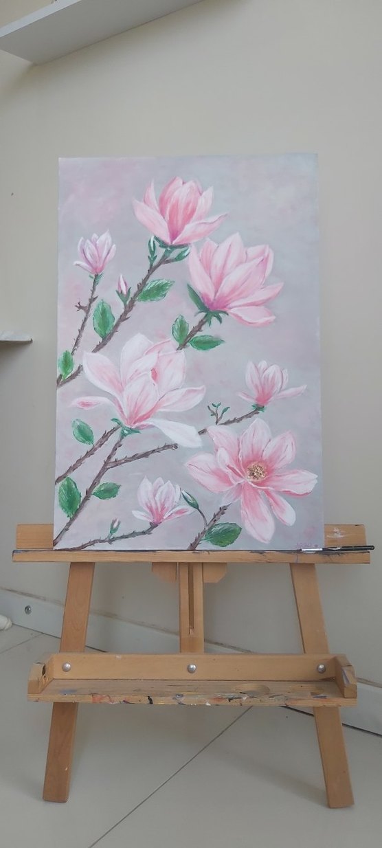 Pastel Pembe Çiçekli akrilik manolya Tablo