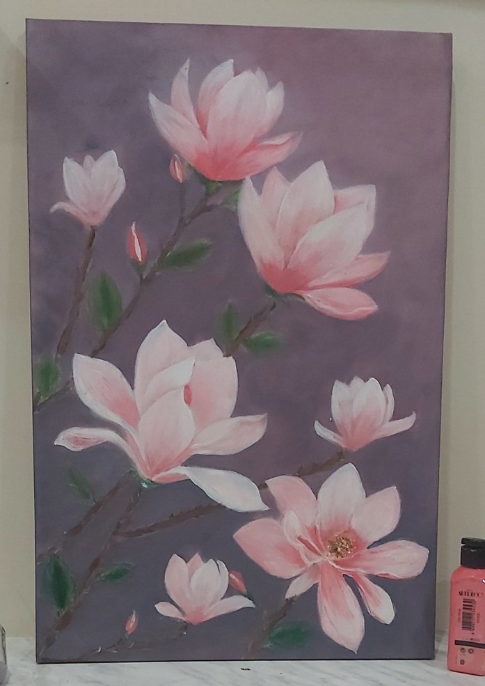 Pastel pembe çiçeklerin yer aldığı, sakin ve zarif bir atmosfer yaratan tablo.75 ×50 cm