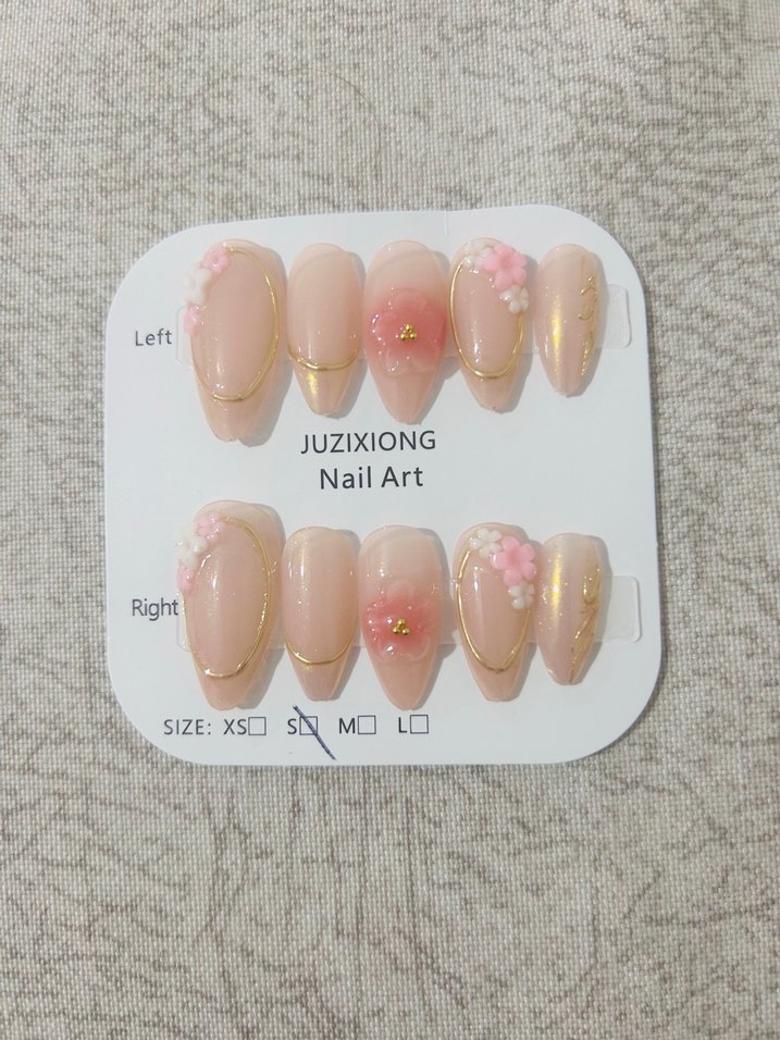 Pastel Pembe Çiçekli Takma Tırnak Seti
