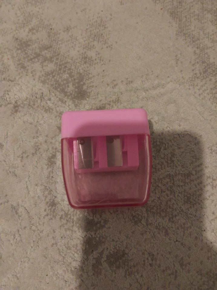 Pastel pembe renkte, farklı kalem boyutları için iki delikli çiftli kalemtraş. Kolay ve etkili kullanım sağlar. ✏️