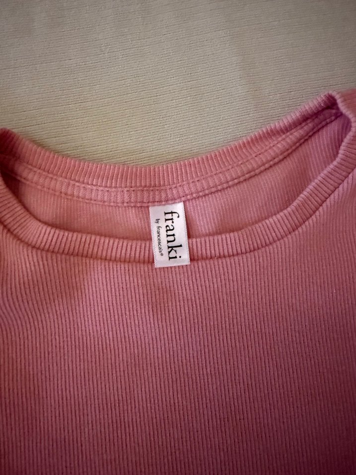 Franki markalı, pastel pembe renkte, desensiz çocuk atleti. Yumuşak ve ince bantlı kumaştan üretilmiştir.