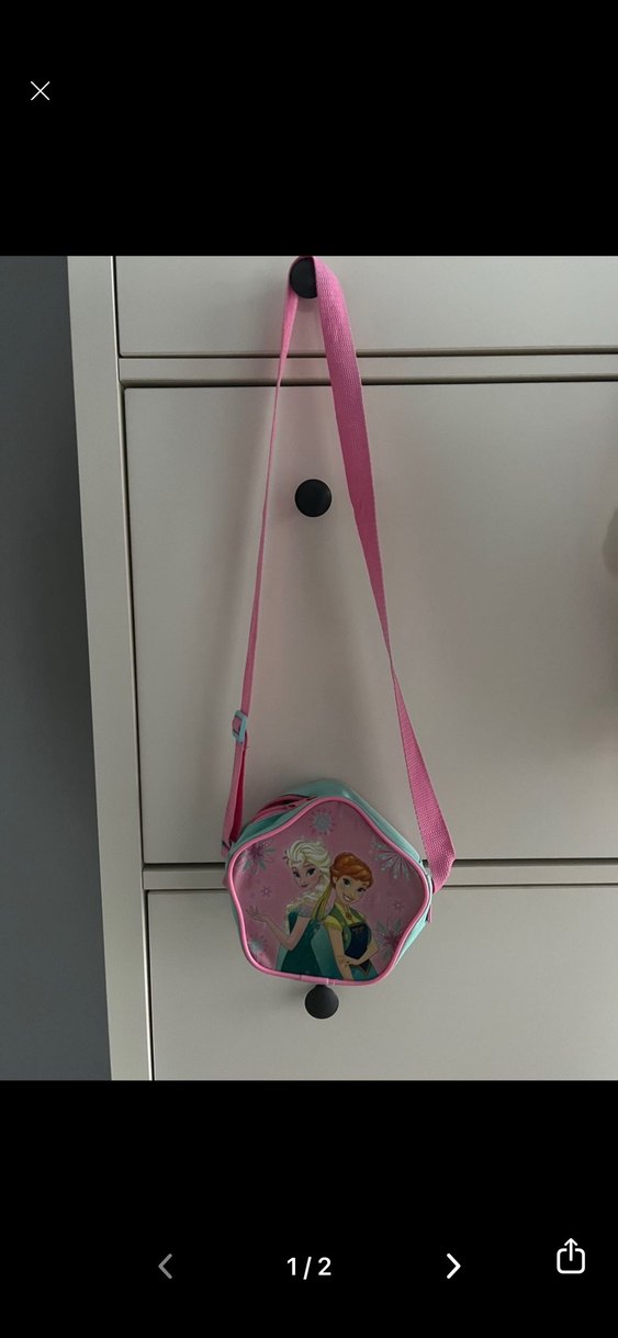 Pastel pembe renkli, önünde Frozen karakterleri bulunan ve ayarlanabilir askılı çocuk okul çantası. ❄️
