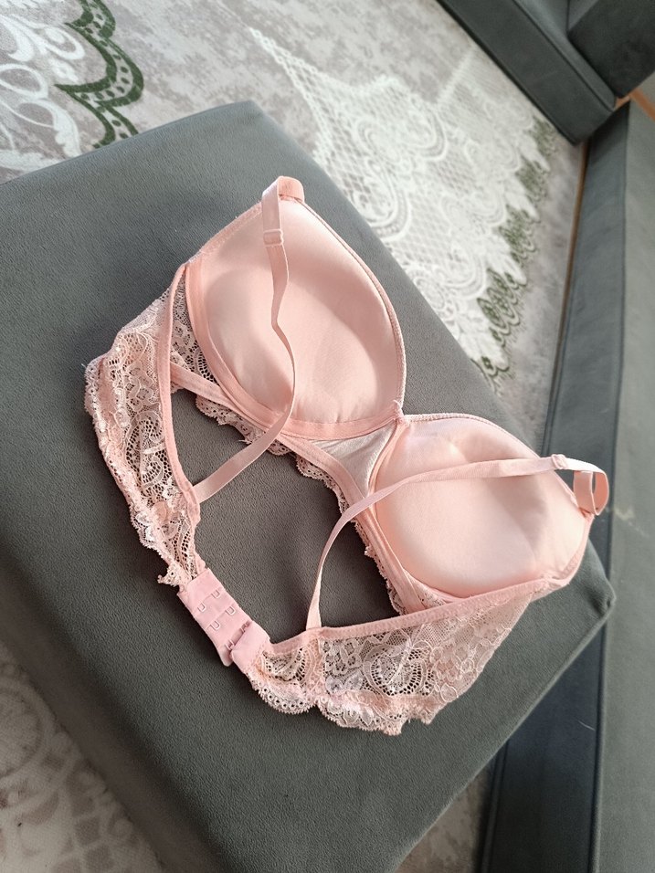 Pastel pembe renkte, dantel detaylı ve ayarlanabilir askılı bohem tarzda sütyen. her iki tarafın da ip koptu 90 b