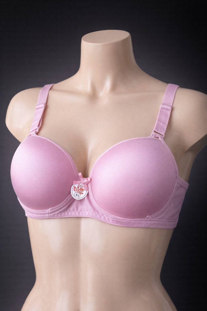 Pastel pembe renkte, düz desensiz ve ayarlanabilir askılı sütyen. Ortasında küçük bir fiyonk detayı bulunur. Normal uzunlukta ve gösterişli, karşı kültür tarzında.