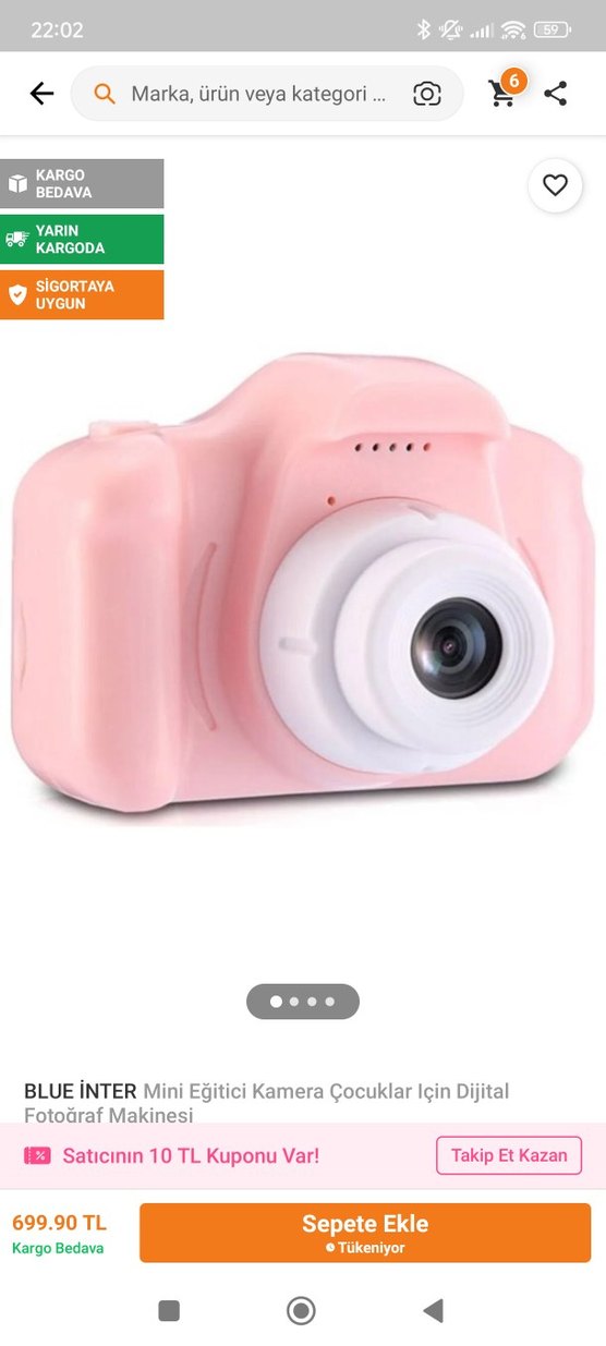 Sigortaya uygun pastel pembe renkte, kompakt dijital mini kamera. Basit lens tasarımı ve kullanımı kolaydır. ses var çalışıyor ama görüntü yok tamir yada parça için kullanilabilir