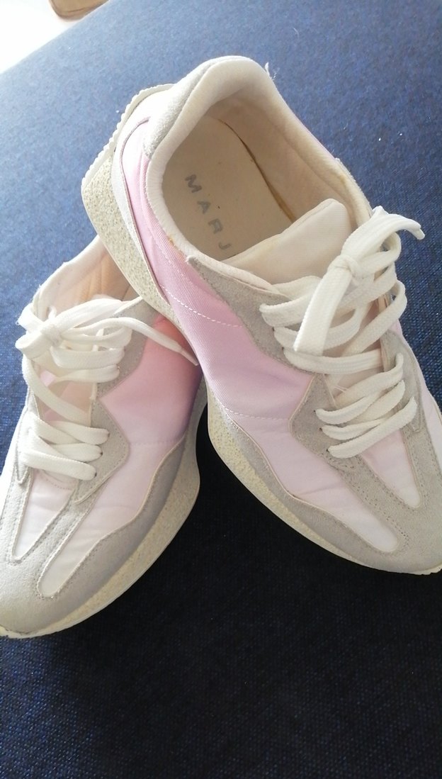 Pastel pembe renkte, dolgu topuklu ve düz tasarımlı kadın spor ayakkabısıdır. Kauçuk tabanlı, rahat sokak stili ve spor kullanıma uygundur.
