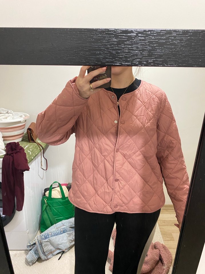 Pastel pembe renkte, düğmeli, uzun kollu, yuvarlak yakalı, bol kesim kadın ceketi. Yumuşak sentetik kumaştan, rahat ve günlük kullanıma uygun. Rengi tam resimdeki gibi. BEDENİ 44 yazıyor ama ben 38-40 giyen birisiyim 65 kg yani bana resimdeki gibi hafif bol oluyor