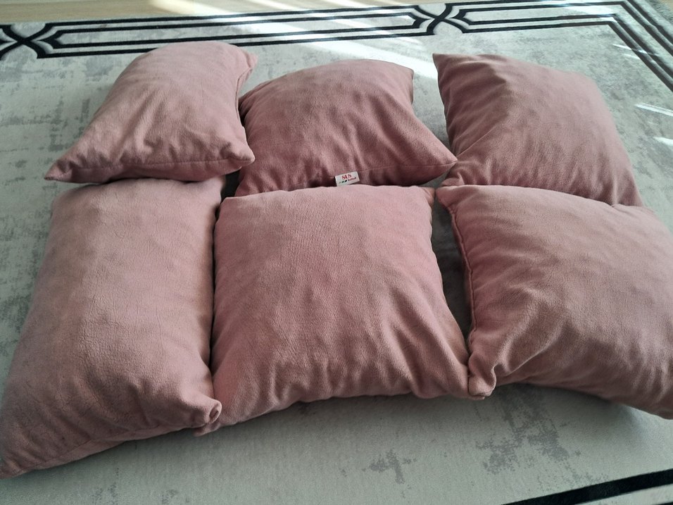 Yumuşak pastel pembe, desensiz ve normcore tarzda yastık kılıfları. Her odaya sade bir dokunuş katıyor. ️ 6 tane 4 tane kare 2 tane ditdörtgen içi sünger kırpıntısı dolu fermuarsız