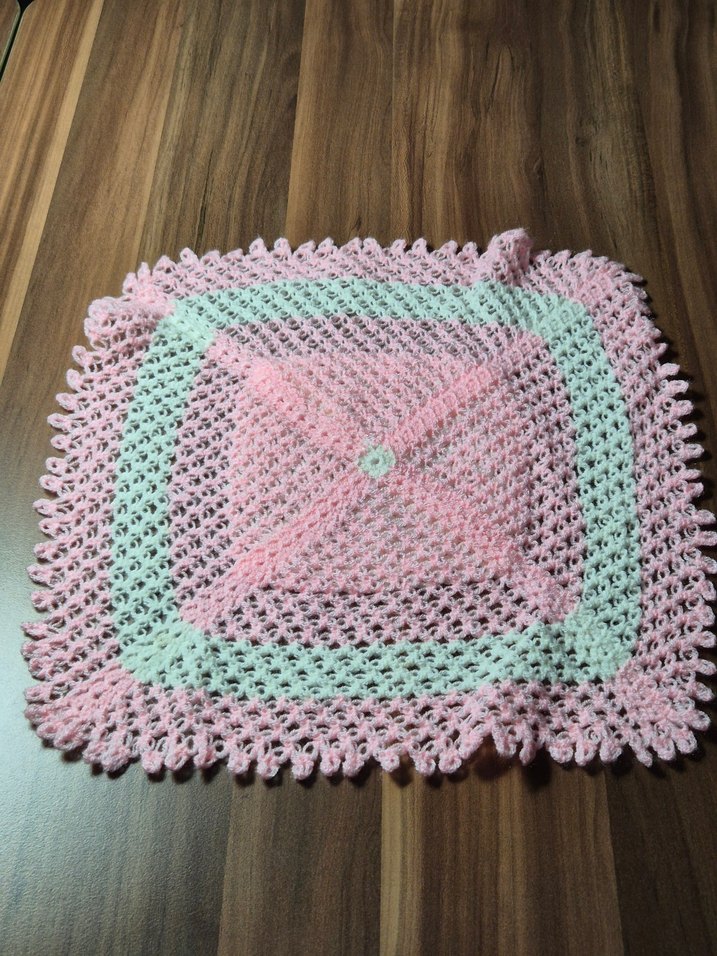 Pastel pembe renkte, el örgüsü detaylı yumuşak dokulu banyo süngeri. (Derya)