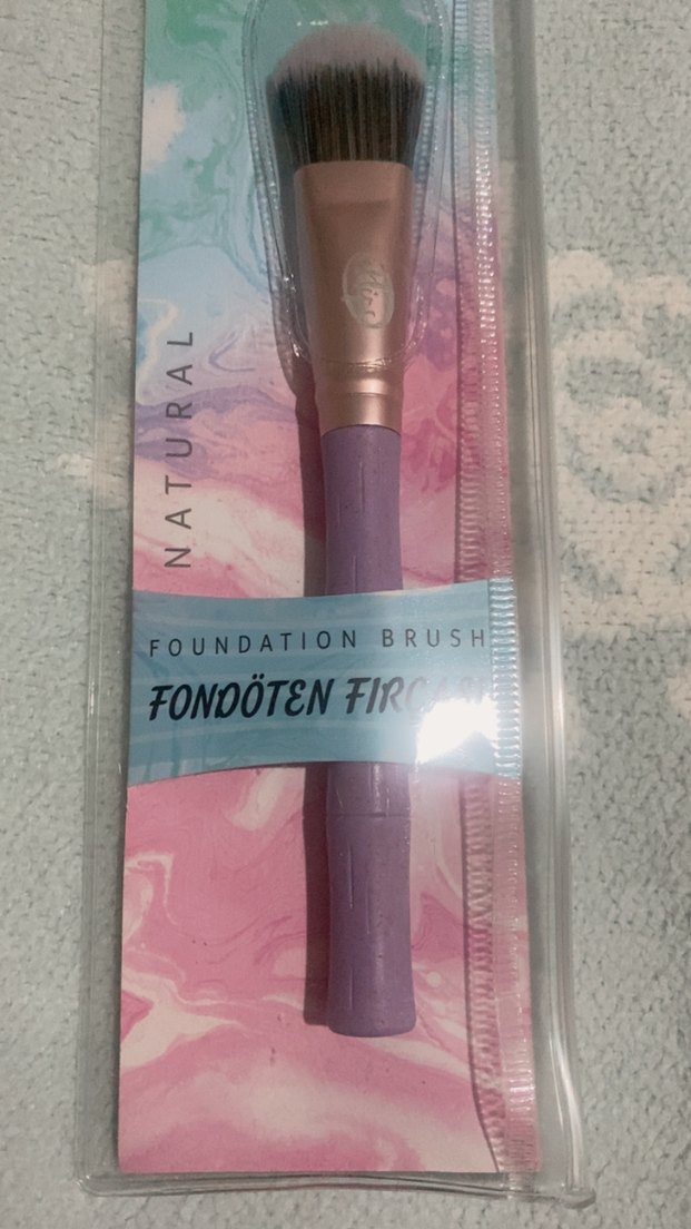 Yumuşak kıllara sahip pastel pembe fondöten fırçası, rahat tutuşuyla makyaj uygulamasını kolaylaştırır. Fondöten fırçası olarak etiketlenmiştir. ️