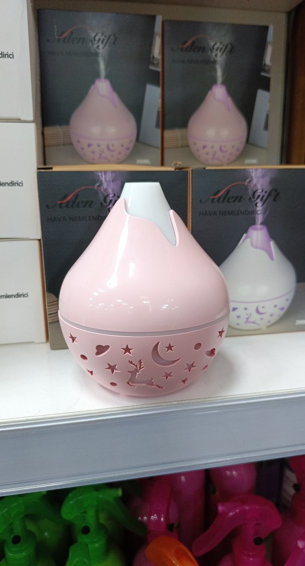 Pastel pembe renkte, yıldız, ay ve geyik desenli hava nemlendirici ve hava temizleyici. Havadaki nemi ve temizliği dengeler.