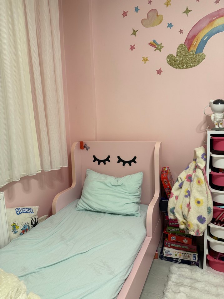 Pastel Pembe İkea Busunge Uzuyabilen Çocuk yatağı Karyolası