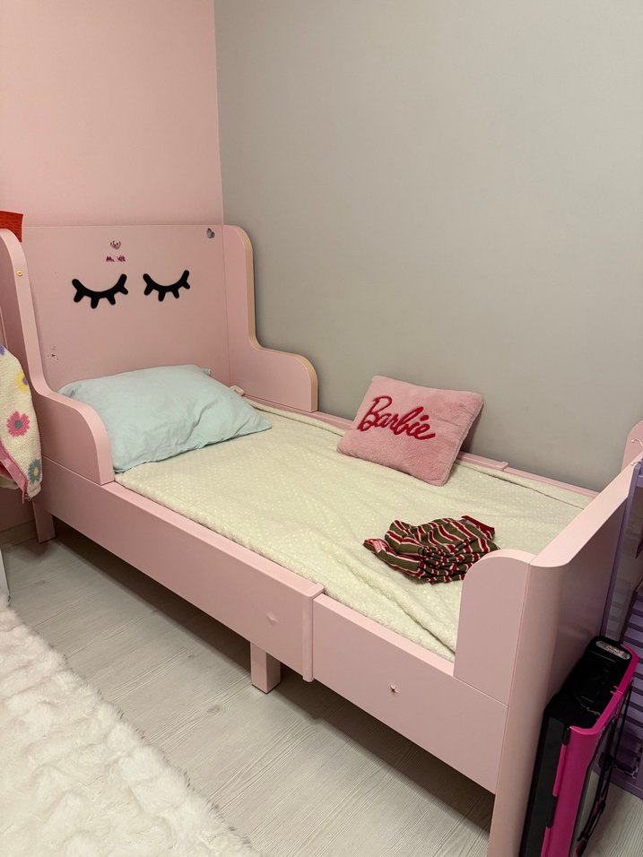 Pastel Pembe İkea Busunge Uzuyabilen Çocuk yatağı Karyolası