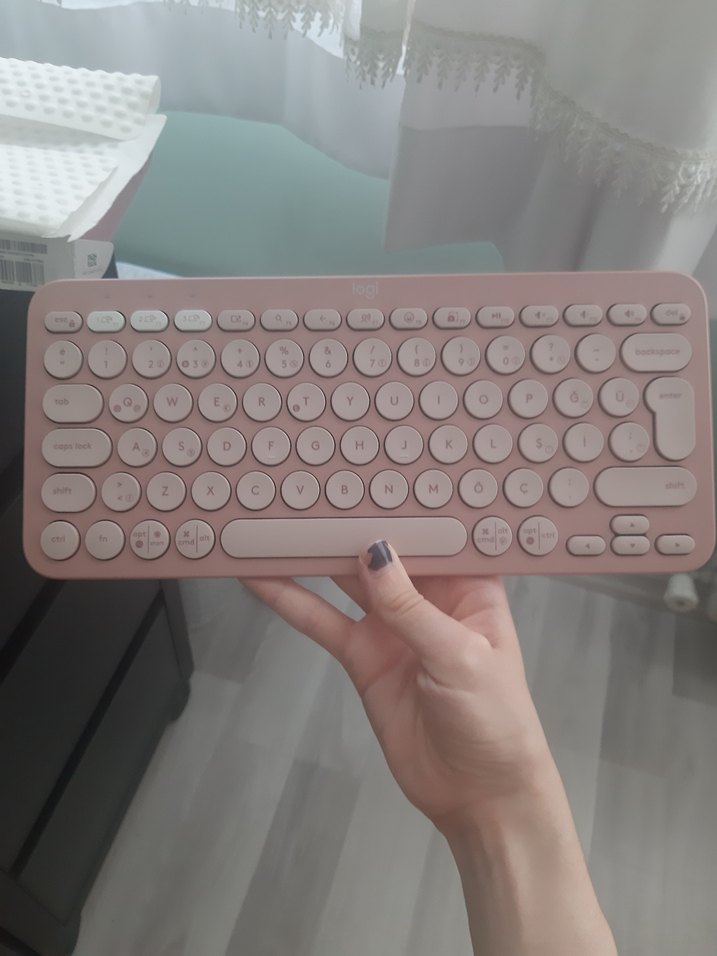 Pastel pembe renkte, yuvarlak tuşlara sahip kompakt kablosuz klavye. Neredeyse hiç kullanılmadı ve bir sorunu yok. Kullanmadığım için satıyorum