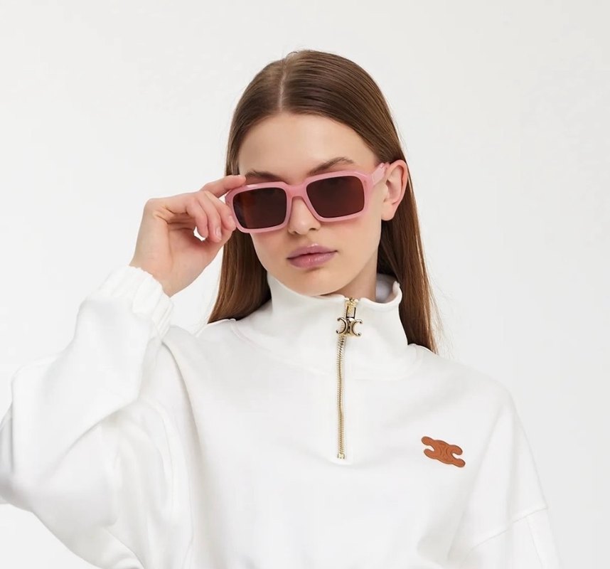 Pastel pembe kare çerçeveli kadın güneş gözlüğü, sokak modası ve rahat şıklığı bir arada sunar. ️