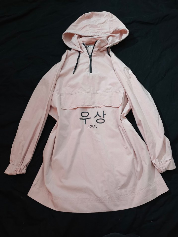 Açık pastel pembe tonunda, hafif ve rahat yapılı kapüşonlu rüzgarlık tunik. Üzerindeki Korece yazı detayı, parçaya modern ve minimal bir karakter kazandırır. Rüzgâra karşı koruyucu, mevsim geçişleri için ideal bir tasarıma sahiptir. Tunik boyu sayesinde hem günlük kombinlerde hem de spor-şık stillerde rahatlıkla kullanılabilir. • Kapüşonlu tasarım • Hafif rüzgarlık kumaş • Kore yazı baskı detayı • Açık pastel pembe renk • S beden #pastelpembe #anime #animestyle #pinkeruzgarlik #ruzgarliktunik #kapusonlutunik #korestil #koreyazi #streetwear #minimalstil #pastelstil #baharlikkombin #gunlukstil #kadintunik #lightjacket #softpink #modernstil #kpop #ıdol #BTS