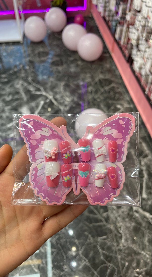 Pastel Pembe Kelebek Tasarımlı Tırnak Süsü