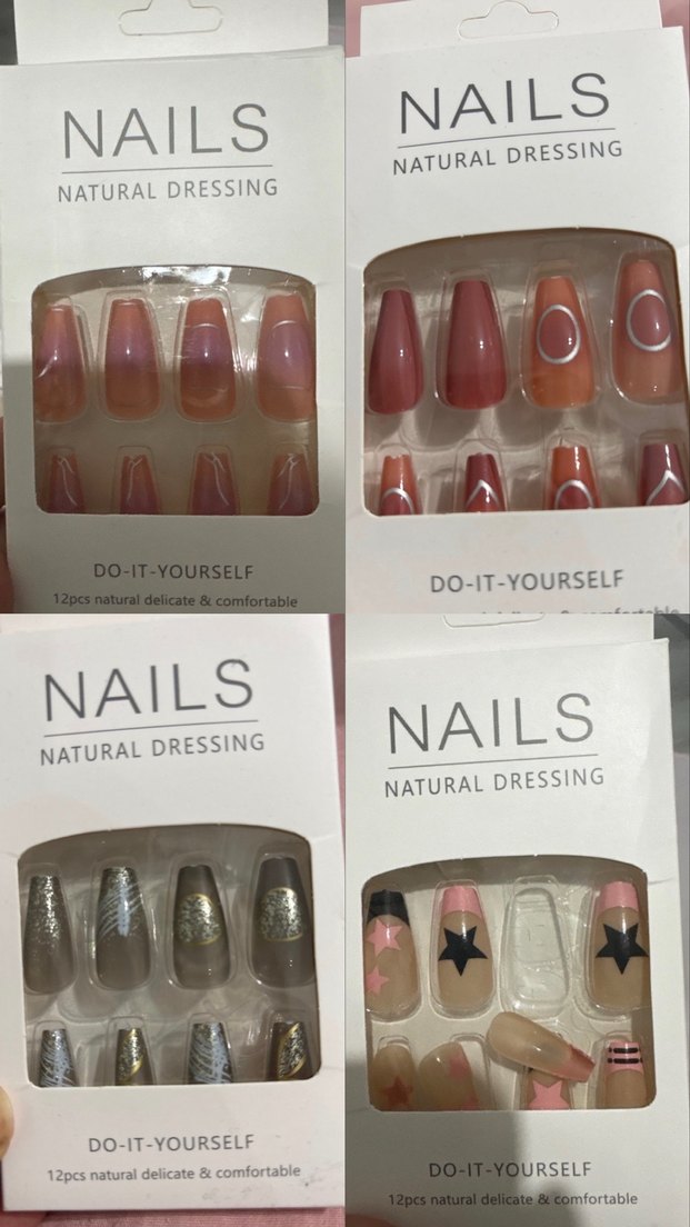 Pastel pembe tonlarında, doğal görünümlü, kendin yap tırnak süslemeleri. 12 parça, rahat ve şık kullanım sağlar. A Adet fiyat
