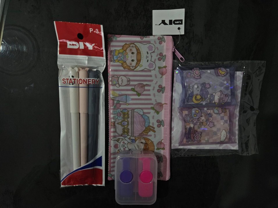 ÜÇLÜ jel kalem kalemlik highlighter kalem ikili ve küçük not kağıtlarından oluşan set