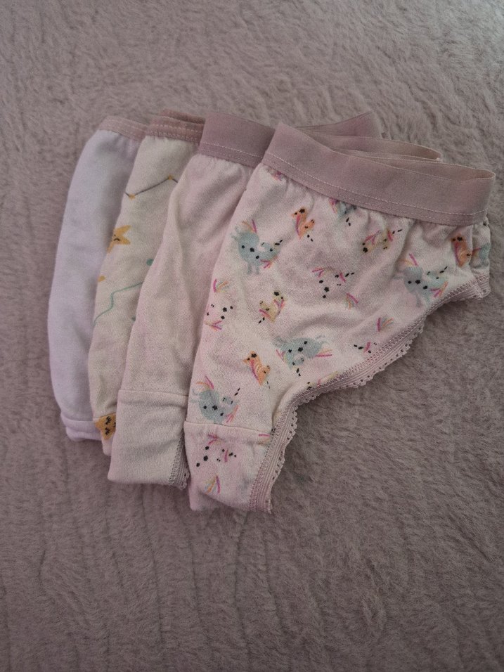 Yumuşak kumaşlı, pastel pembe kız çocuk külot seti. Hafif desenli ve düz modelleri içerir. 4 adet