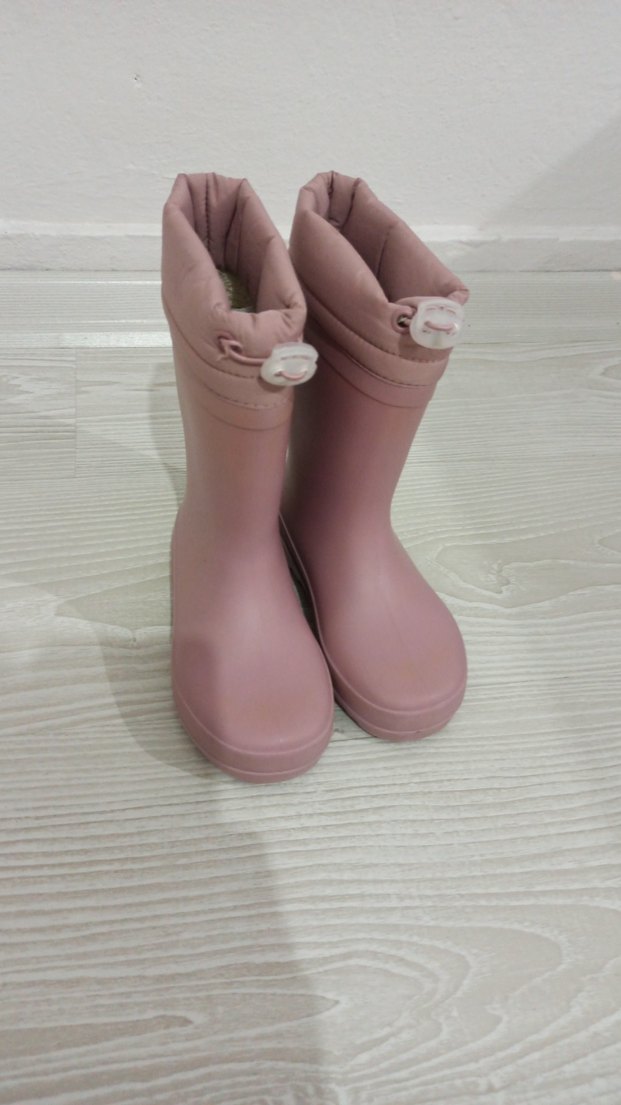 Pastel pembe renkli, içi pamuklu yağmur çizmesi tertemiz