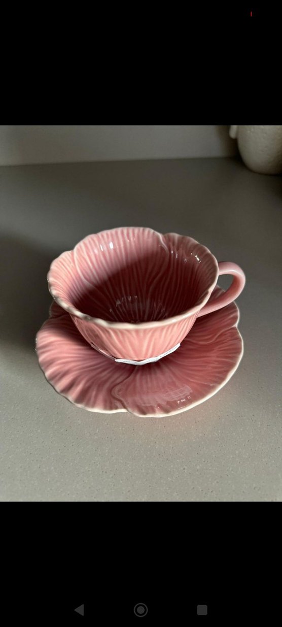 1 kupa 1 tabak fiyatı Pastel pembe renkte, çiçek yaprağı dokusunu andıran seramik fincan ve tabak seti. Zarif ve şık bir sunum sağlar. ☕